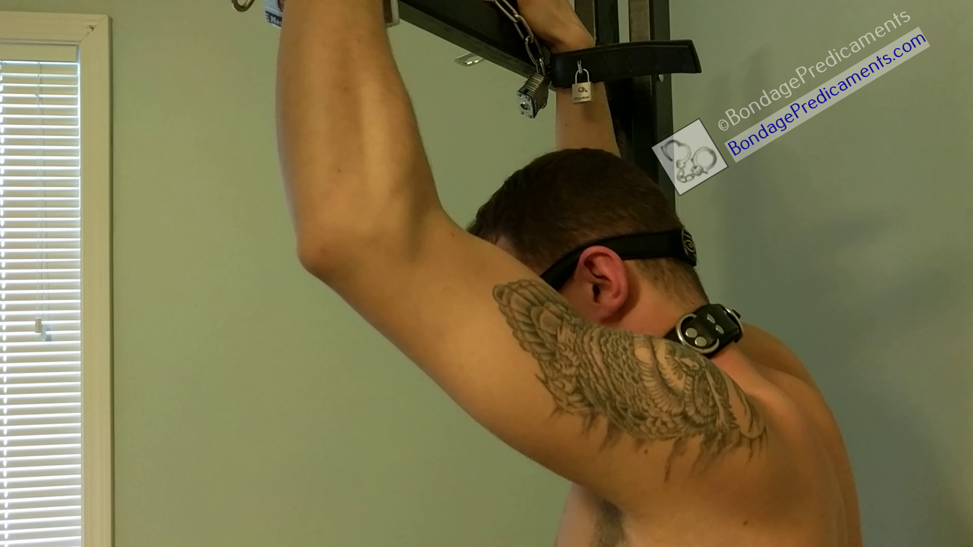 Gboy struggles to deal with his limited options more and more as time works against him. Then he hears, "You're getting pretty lazy there. Anytime I see your ass touch that bench, something is gonna get whipped." From that point on, when he chooses to "rest" his ass on the spiked stool, either his ass or his bare feet get whipped with a relentless, automated leather whip. Watch him struggle to hold a chin-up position until he can't hold himself up anymore. Then it's back down to feel the spikes, and the sting of the leather whip smacking away at his ass or both of his bare feet until he builds up the strength and motivation to pull himself up yet again.